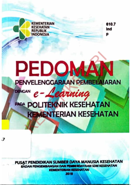 | 1 | PEDOMAN PENYELENGGARAAN PEMBELAJARAN DENGAN E-LEARNING PADA POLITEKNIK KESEHATAN KEMENTRIAN KESEHATAN.pdf | PEDOMAN PENYELENGGARAAN PEMBELAJARAN DENGAN E-LEARNING PADA POLITEKNIK KESEHATAN KEMENTRIAN KESEHATAN | Baca Online |