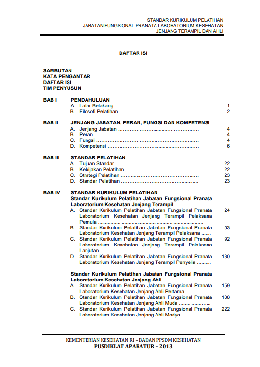 | Abstrak | Buku kurikulum ini berisi Pranata Laboratorium Kesehatan Terampil adalah Pranata Laboratorium Kesehatan Keterampilan yang mempunyai kualifikasi teknis atau penunjang profesional yang pelaksanaan tugasnya meliputi kegiatan teknis operasional yang berkaitan dengan penerapan konsep atau metode operasional di bidang laboratorium kesehatan. |