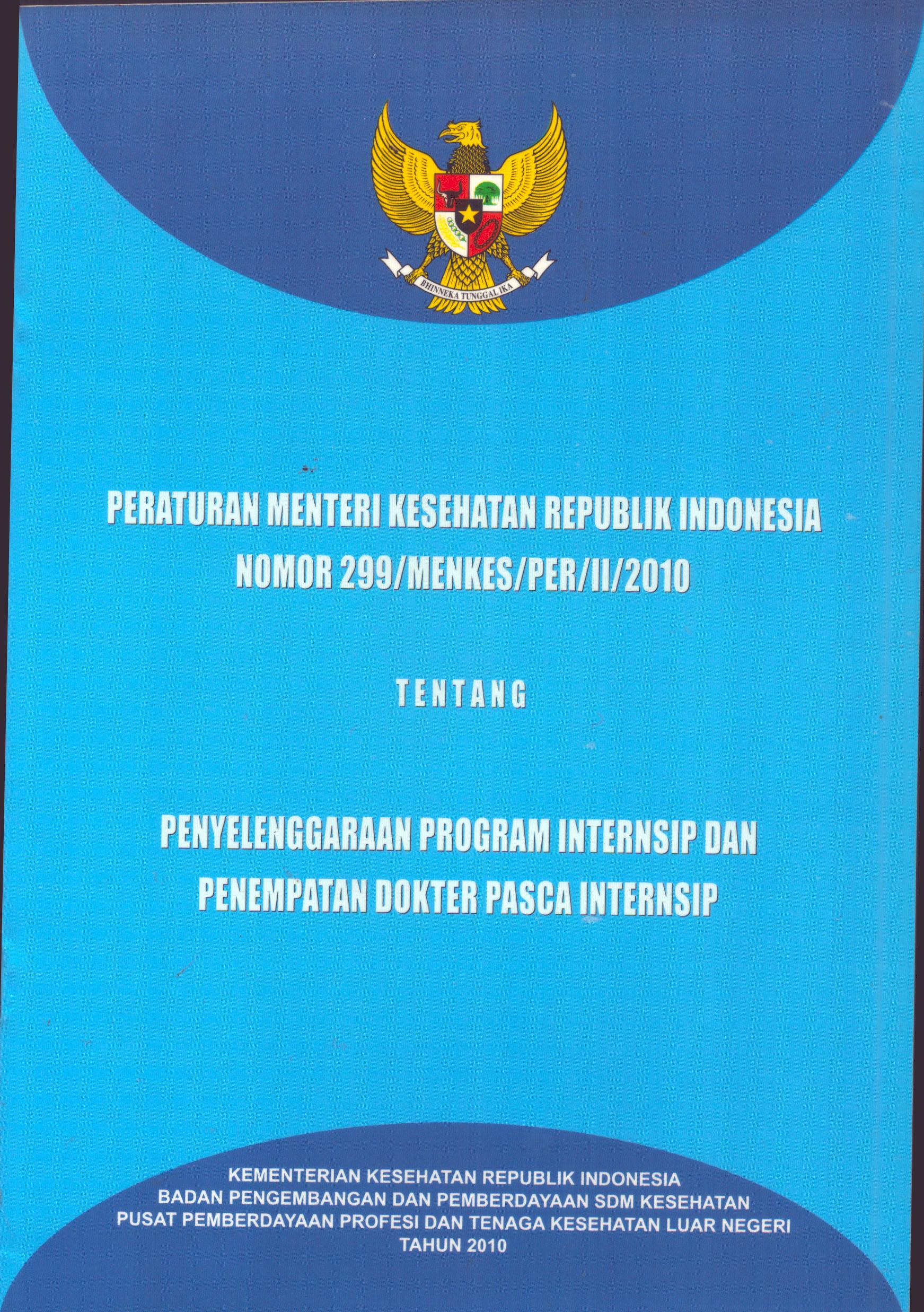 | Judul | Peraturan Menteri Kesehatan Republik Indonesia Nomor 299/MENKES/PER/II/2010 : Tentang Penyelenggaraan Program Internsip Dan Penempatan Dokter Pasca Internsip / Kementerian Kesehatan Republik Indonesia |